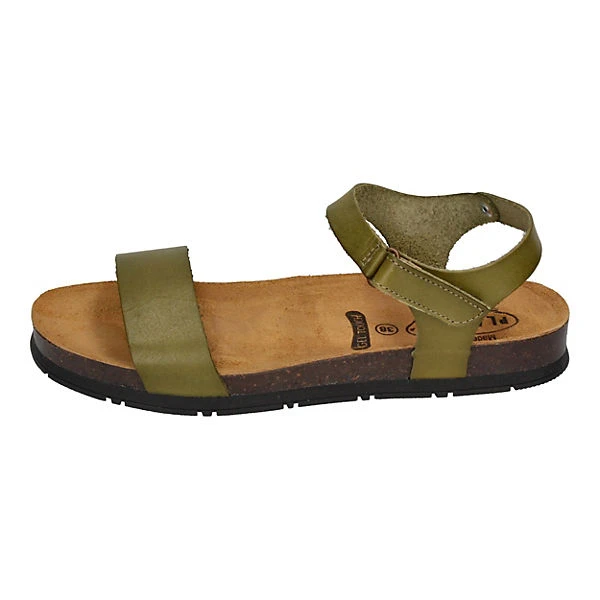 Die schöne, flache Sandalette Global in olivegrün überzeugt uns durch den klassischen Style und durch beste Verarbeitung. Die Sandaletten sind durch den Klettverschluß schnell anzuziehen und in Verbindung mit der eine ausgeformten Kork Sohle werden diese Sommerschuhe sicher schnell zum Lieblingsschuh.