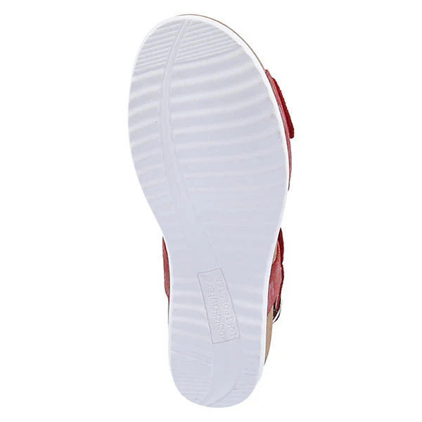 Schöne Sandalen von Waldläufer aus einem feinen hochwertigem Glattleder. Innen ist der Schuh mit einem cromfrei gegerbtem Leder ausgestattet. Der Keilabsatz hat eine Höhe von cirka 4 cm. Die Laufsohle ist aus Gummi. Der Klettverschluss zum einfachen und bequemen an- und ausziehen sorgt für einen guten Halt.Ebenfalls ist eine stufenlose Anpassung an den Fuß möglich. Die Schuhgröße fällt regulär aus.